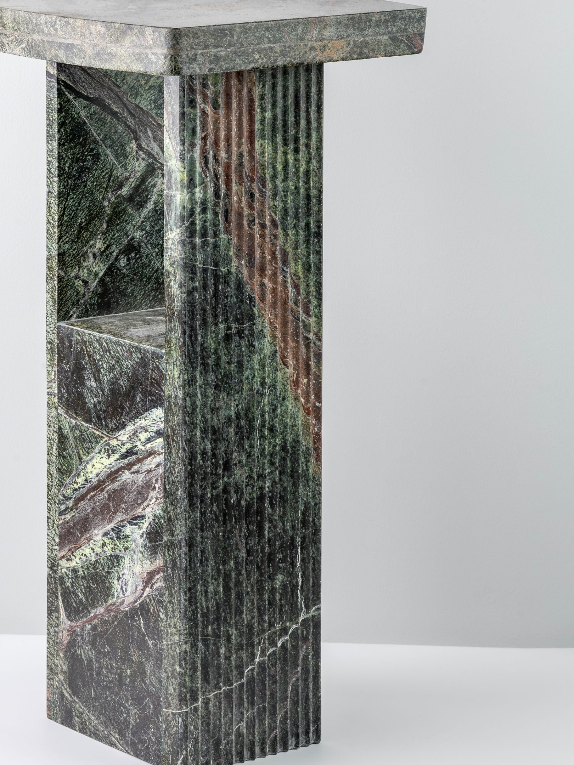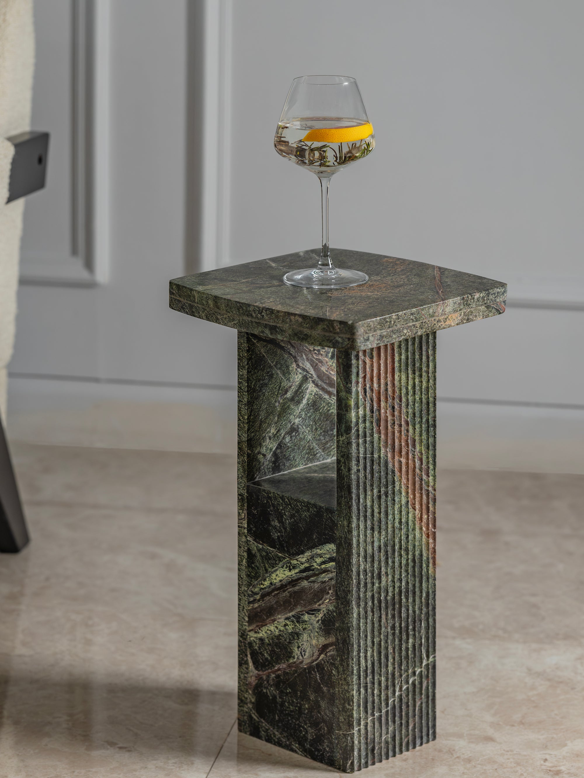 A masterpiece of design and craftsmanship. Meticulously created from fine Indian stone, this décor piece exudes luxury and tranquility. Its soothing green tones bring a refreshing elegance to any space, reflecting nature’s harmony blended with timeless sophistication